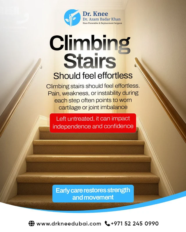 If stairs feel challenging, it may be due to cartilage wear or joint imbalance.
